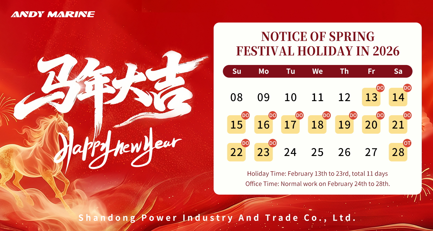 Là nhà cung cấp chuyên nghiệp về phần cứng và phụ kiện hàng hải, Andy Marine cam kết cung cấp các sản phẩm chất lượng cao và dịch vụ đáng tin cậy. Khi Lễ hội mùa xuân đến gần, công việc của các bộ phận khác nhau trong công ty đang bước vào giai đoạn cuối cùng, vấn đề đặt hàng và giao hàng trước Tết cũng đang bước vào giai đoạn cuối cùng để đảm bảo sản phẩm được giao đến tay khách hàng kịp thời.
